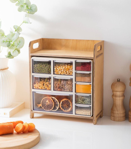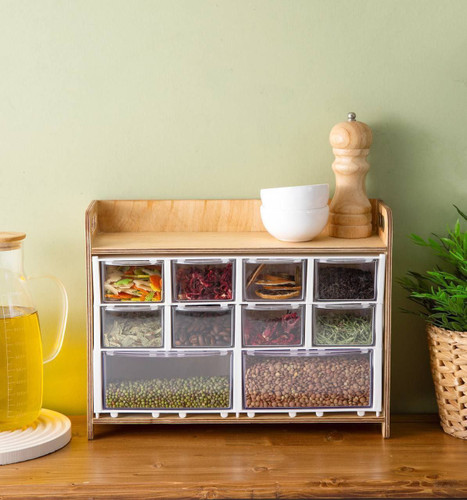 جا ادویه 10 کشو استند چوبی دسته دار کوچک
